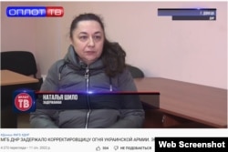 «МГБ ДНР задержало корректировщицу огня украинской армии. Эксклюзив» – с такими заголовками на канале российской гибридной администрации вышел сюжет о задержании «украинской шпионки». Это педагог Наталья Шило: Радио Донбасс.Реалии писало о ней в конце прошлого года. В сюжете не уточнили, что держат женщину под стражей с лета 2021 года. Она ехала к матери на оккупированную территорию и была снята с рейса боевиками.