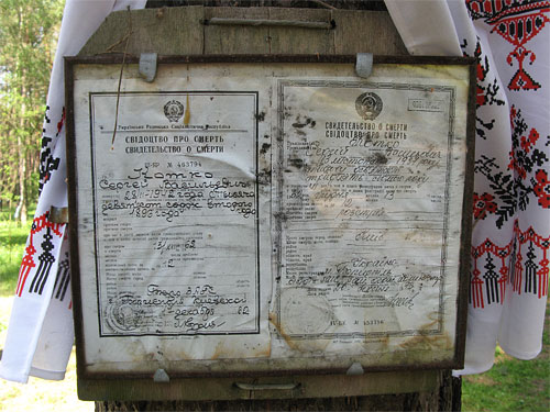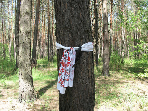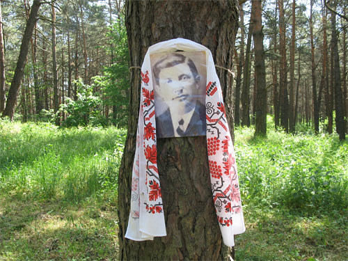 | | Точне місце, де зустріли смерть близькі, не знає ніхто. На одному кв. метрі лісу тут лежть троє розстріляних. |
