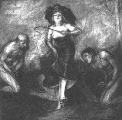 | Бруно Шульц. Жінка з батогом і два голих чоловіка, сцена з автопортретом |