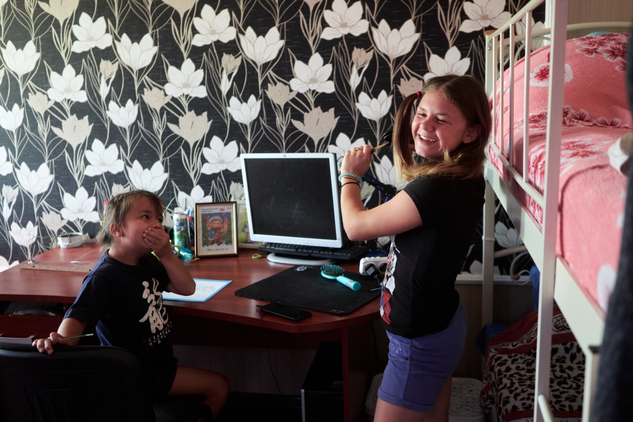 Поруч із ним у шкільному дворі крутяться двоє дівчаток. Сестри-другокласниці Карина та Авігея Маркови не пам’ятають рідного Донецька, але чітко ідентифікують себе переселенцями і прислухаються, коли вчитель просить місцевих учнів допомагати новеньким адаптуватися.