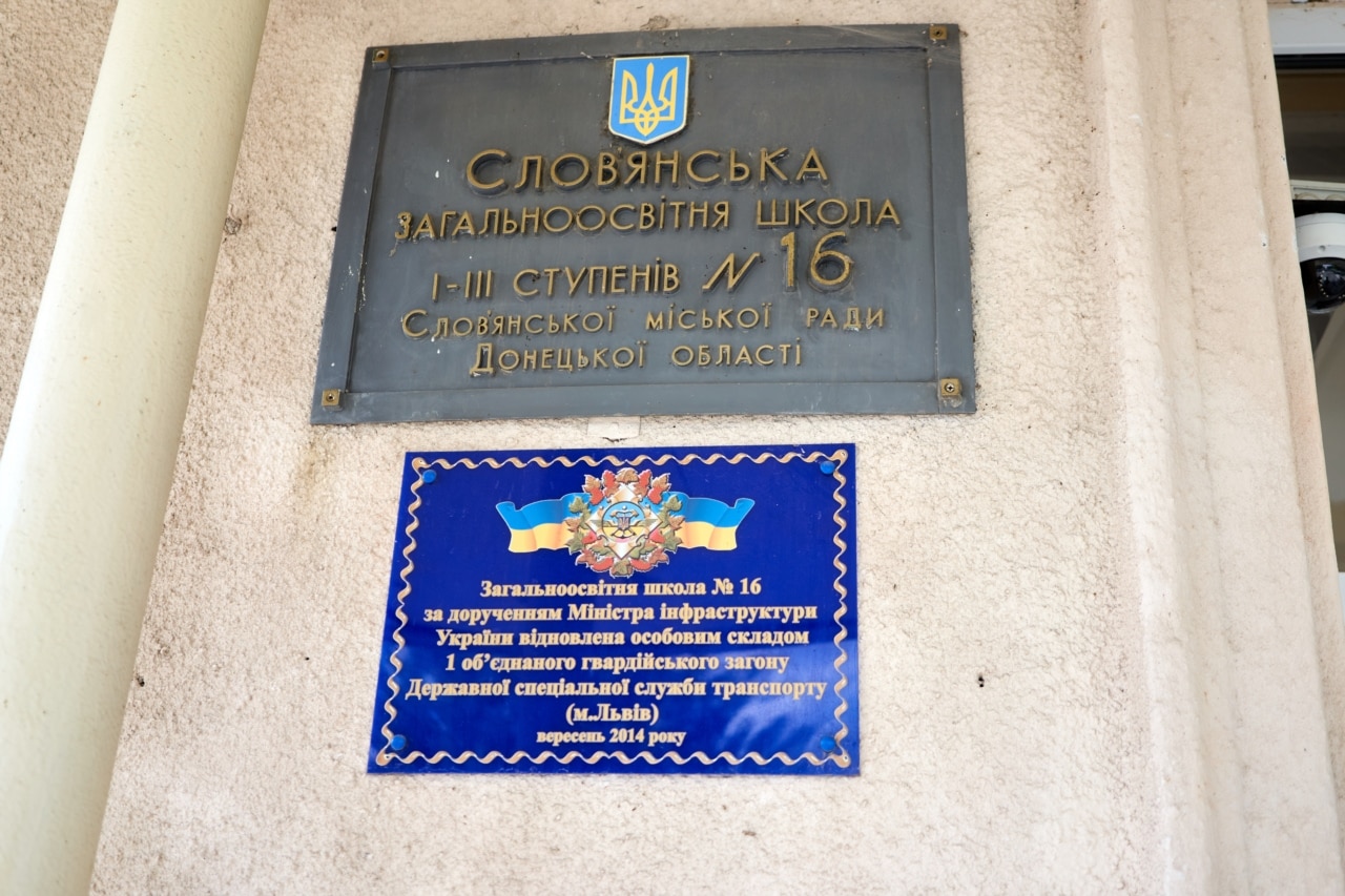 – Коли Слов’янськ звільнили, а нам з колективом дозволили прийти у школу після того, як тут провели мінно-пошукові роботи, ми всі плакали. Було боляче бачити, що бойовики зробили з нашою школою. Думали тоді, що не встигнемо підготуватися до першого вересня, але, на щастя, допомогли українські військові. За півтора місяці вони відновили нашу і ще кілька місцевих шкіл. Тепер на центральному вході є табличка із зазначенням підрозділу, який прийшов нам на допомогу, – розповідає директорка.