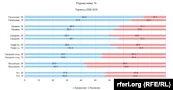 10 років тому таких було 53,2%; а під час перепису 1999 року 73,7% населення країни назвали білоруську рідною мовою.