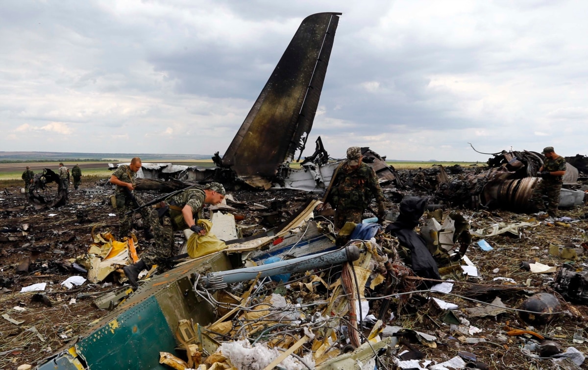 Проросійські бойовики на Донбасі збирають боєприпаси на місці аварії літака Іл-76 у Луганську