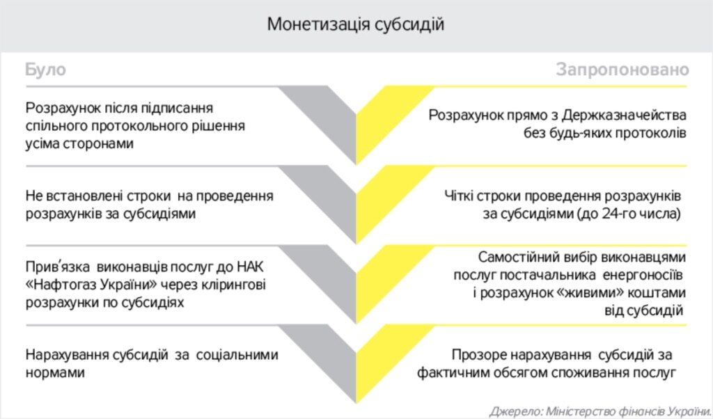 За програмою має змінитись система розрахунків по субсидіях із підприємствами-постачальниками комунальних послуг та енергоносіїв.
