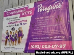 Ці фотографії зроблені у Дарницькому районі Києва. Реклама спортивного клубу Peregrine і школи танцю «Багіра» розташовані поряд з дитячим садочком і середньою школою. Телефонуємо до клубу Peregrine, запитуємо про умови.