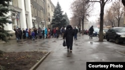 На следующий день я была свободна и отправилась на улицу Пушкина. Пришла неудачно – в 11:00. Перерыв начинался в 12:00 и к 12:00 я приблизилась только ко входным дверям администрации. Само ожидание не было стрессовым – люди стояли терпеливо, очередь двигалась, только людей было очень уж много – весь Луганск. В 12:00 я была счастлива оказаться за порогом, но внутри было не чуть ни теплее, чем снаружи, и час обеденного перерыва мы ждали переминаясь с ноги на ногу – погода была декабрьской во всех смыслах. За время обеденного перерыва кто-то побежал купить в киоске рядом кофе и грел руки о стаканчик.