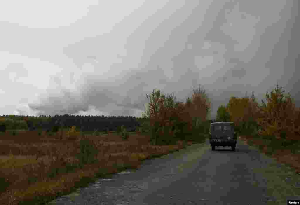 О 4:22 був закритий повітряний простір у радіусі 30 кілометрів, а рух залізничного й автомобільного транспорту призупинений. Евакуйовано близько 12 тисяч осіб. На фото – покинута машина на дорозі в селищі Дружба, що розташоване поблизу складів боєприпасів