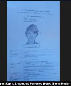 У «ВКонтакте», наприклад, створили спеціальну групу «Теракт. Керчь. Владислав Росляков (Рейх)», у якій публікуються документи, пов’язані із загиблим. Там оприлюднена виписка з паспорта Рослякова, згідно з якою хлопець народився 2 травня 2000 року в Керчі, а у 2014 році йому був виданий російський паспорт у зв’язку з досягненням 14 років.