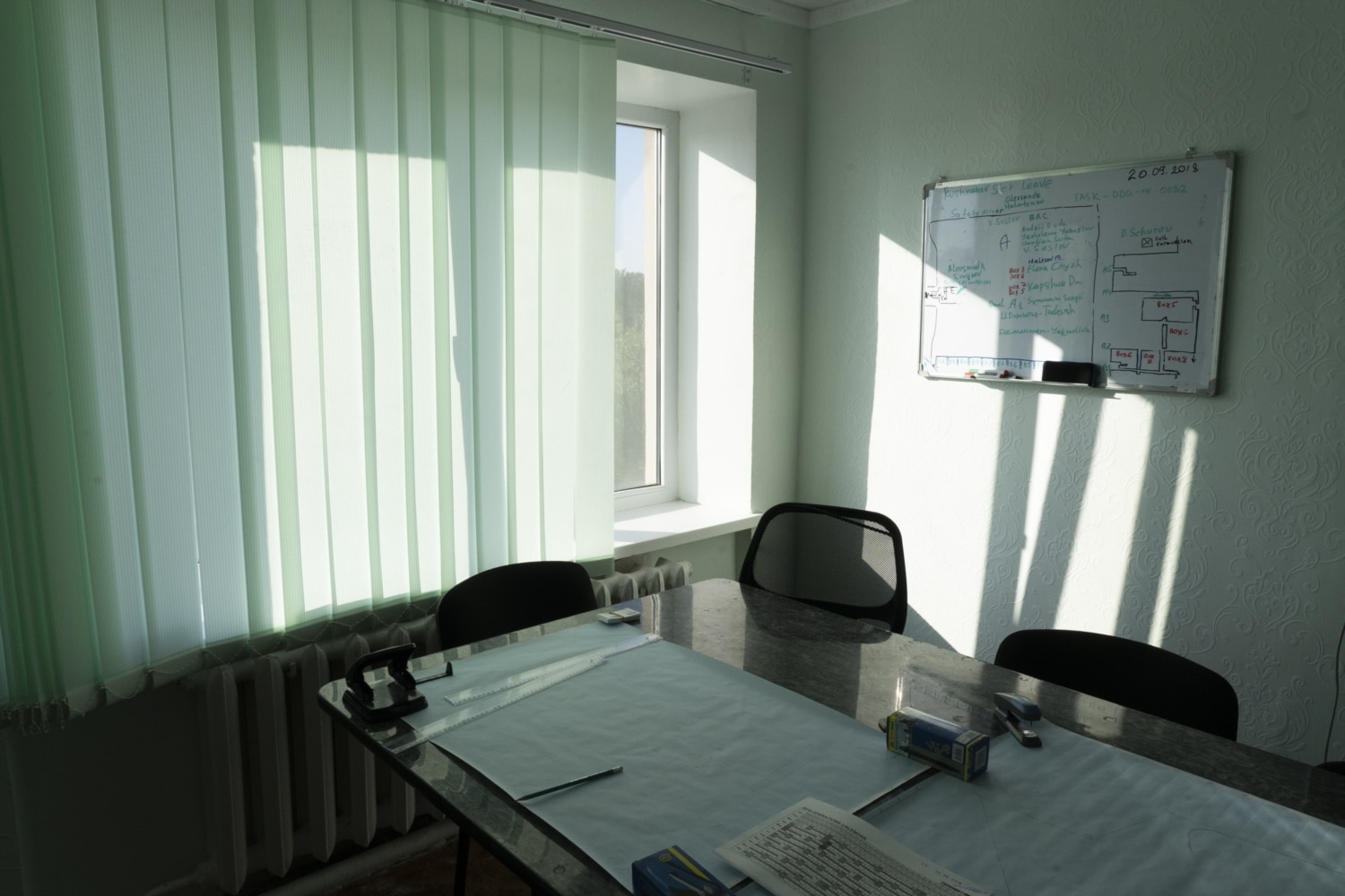 Our story begins not in Myrna Dolyna but on the outskirts of Lysychansk, a city where the steppe runs straight into residential neighborhoods, where war and occupation rolled over less devastatingly than farther to the east, and where almost all industrial enterprises have been destroyed long before the Russian aggression. Danish Demining Group has its base in one of these neighborhoods, on the border between the steppe and the city. The base is housed in a two-story building that once was the office of a gas company, which the sappers repaired themselves.