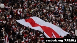 На початку дня в Мінську йшов дощ, і прогнозували, що акція може бути менш чисельною. Пізніше дощ закінчився, а міські вулиці заповнили десятки тисяч людей із біло-червоно-білими прапорами, повідомляє білоруська служба Радіо Свобода.