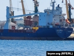 В акваторії Феодосійського торгового порту помітили судно SOURIA (IMO: 9274331) під сирійським прапором. Як повідомляє кореспондент проєкту Радіо Свобода Крим.Реалії, судно стоїть біля зернового терміналу морського торгового порту Феодосії.