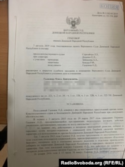 У копії «рішення суду» вказано, що Галазюк «діючи з мотивів власного неприйняття ідей формування і функціонування «ДНР» як самостійної держави і прагнення її до інтеграції з Росією, маючи інші погляди на шляхи і перспективи державного будівництва в Донецькому регіоні… вступив у злочинну змову з журналістом Київського бюро інформаційної служби Радіо Свобода…, спрямовану на написання статей, що відображали життя в «ДНР» із негативного боку».