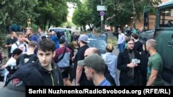 Поблизу будівлі телеканалу NewsOne триває анонсований раніше мітинг, повідомляє кореспондент Радіо Свобода.