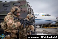 Служба безпеки України провела тактико-спеціальні навчання в аеропорту «Антонов» у Київській області, повідомляє пресслужба відомства 24 січня.