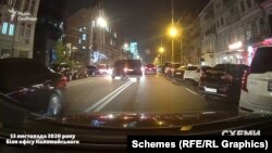 Автомобіль Кауфмана, як помітила знімальна група, виїхав з арки, яка веде до бокових воріт ОП, і попрямував до будівлі, де знаходиться офіс підприємця.