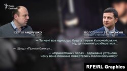 Кандидат на посаду президента Володимир Зеленський відповів на запитання журналістів, які шанси у олігарха Ігоря Коломойського повернути собі націоналізований «Приватбанк». Про це йдеться у спецрепортажі програми «Схеми: корупція в деталях» (спільний проект Радіо Свобода та телеканалу «UA:Перший») – «Вперед, на Банкову!».