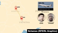 Як виявили «Схеми», цей літак регулярно базується у Мінську і ним користується не тільки родини Козака та Медведчука, але й білоруський олігарх Микола Воробей та чільні менеджери його компаній.