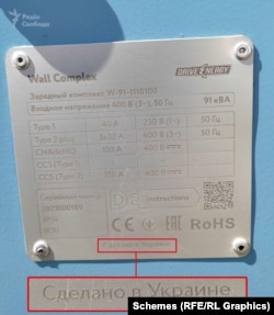 Також «Схеми» звернули увагу, що з 2021 року в Криму запрацювала та збільшувалась мережа електрозарядних станцій під брендом DriveEnergy, виготовлених саме на харківському заводі Autoenterprise. На станціях прямо вказано, що вони «зроблені в Україні».
