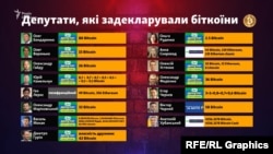 Загалом серед депутатів 9-го скликання та членів їхніх родин, згідно з деклараціями парламентарів за 2020 рік, є майже два десятки тих, хто зберігає свої заощадження у криптовалюті. Дехто ризикнув вкластися одразу у кілька віртуальних активів.