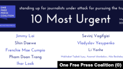 До списку також увійшли журналісти з Гонконгу, М’янми, Філіппін, В’єтнаму, Азербайджану, Китаю, Киргизстану і Туреччини.