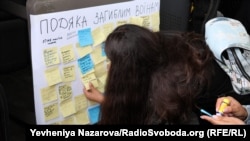 Учасники акції встановили прапорці з іменами своїх загиблих рідних і близьких у спеціально створеній для цього зоні.