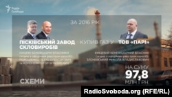 «Пісківський завод скловиробів» у 2016 році купив природній газ у ТОВ Парі на загальну суму 97,8 мільйонів гривень. Кінцевими бенефіціарами цього заводу є Петро Порошенко та Ігор Кононенко, які володіють ним через свої фонди – «Прайм Ессетс Кепітал» та «Вік» відповідно.