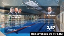 Щонайменше три підприємства, кінцевими бенефіціарами яких є президент України Петро Порошенко та його близькі соратники у владі – Ігор Кононенко та Олег Гладковський, упродовж 2016 року купували газ для своїх виробничо-побутових потреб у фірми ТОВ «Парі» (Burisma Group). Кінцевим бенефіціаром цієї фірми є Микола Злочевський, колишній міністр екології уряду Миколи Азарова та близький соратник Віктора Януковича, який виїхав після Майдану з України через загрозу кримінального переслідування. Про це йдеться у розслідуванні програми «Схеми», журналісти якої отримали доступ до звітів компаній Burisma Group за 2016 рік, та проаналізували, хто купував газ у фірм Злочевського.