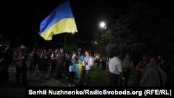 У Києві біля будівлі посольства Росії в Україні вночі провели акцію на підтримку українського режисера Олега Сенцова та інших ув'язнених в Росії українців.