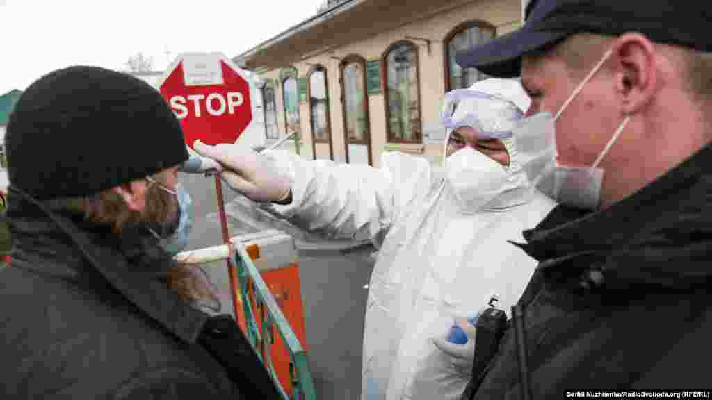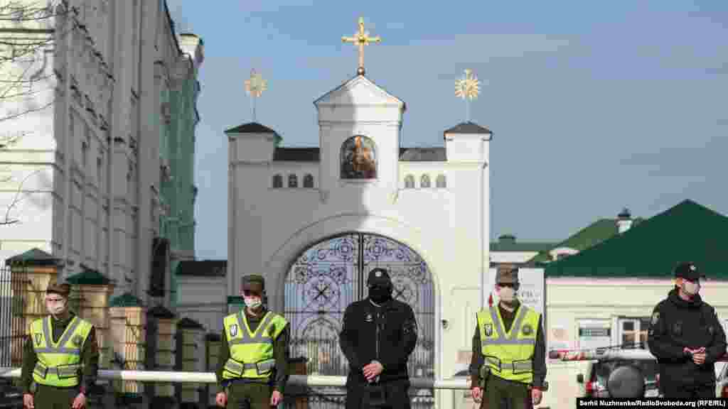 Ввечері поліція і Нацгвардія почали патрулювання біля Києво-Печерської лаври. На входах до лаври стоять медики, які проводять температурний скринінг. До лаври допускають лише її служителів і тих, хто може підтвердити документально необхідність перебувати там.