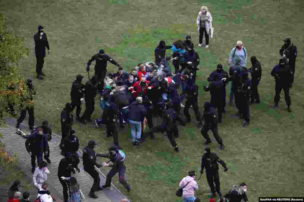 Дев'яту неділю поспіль у Білорусі проходять багатотисячні вуличні акції протесту. Сьогоднішня акція у Мінську відбувається під назвою «Марш честі». Мирний протест розпочався жорстокими затриманнями в районі стели на проспекті Переможців. Швидка допомога забирала поранених учасників акції з пробитими головами.