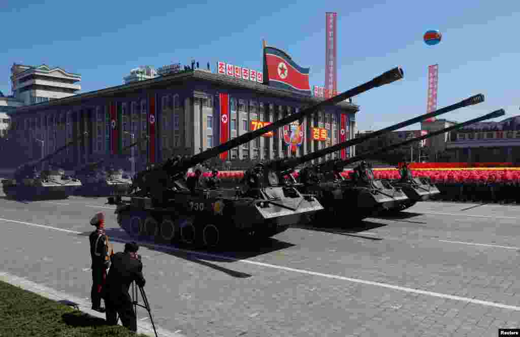 Солдати марширують під час параду до 70-ї річниці КНДР