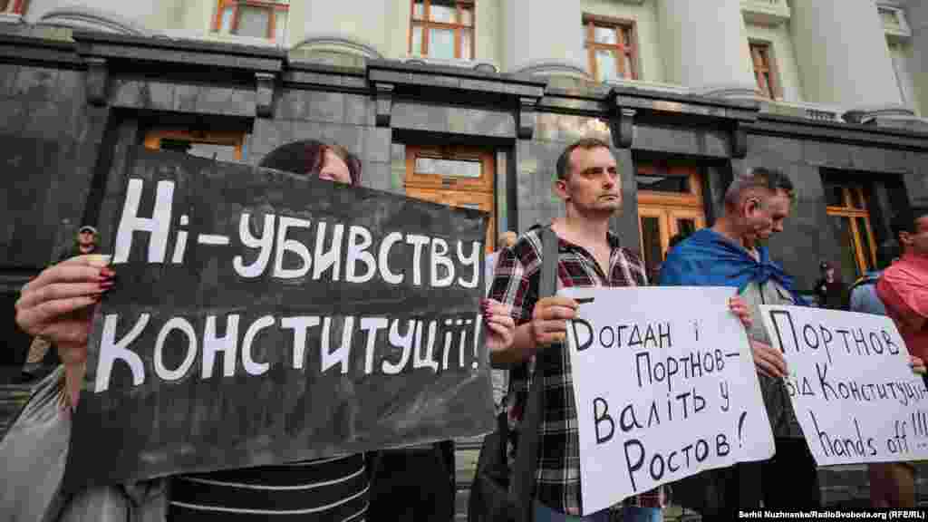 Біля будівлі офісу президента пройшла акція «Захисти Конституцію #CтопРеванш». Активісти напередодні дня Конституції вимагали звільнити голову офісу президента Андрія Богдана, речницю президента Юлію Мендель та притягнути до відповідальності Андрія Портнова. Учасники акції принесли на Банкову труну як символ «поховання Конституції».