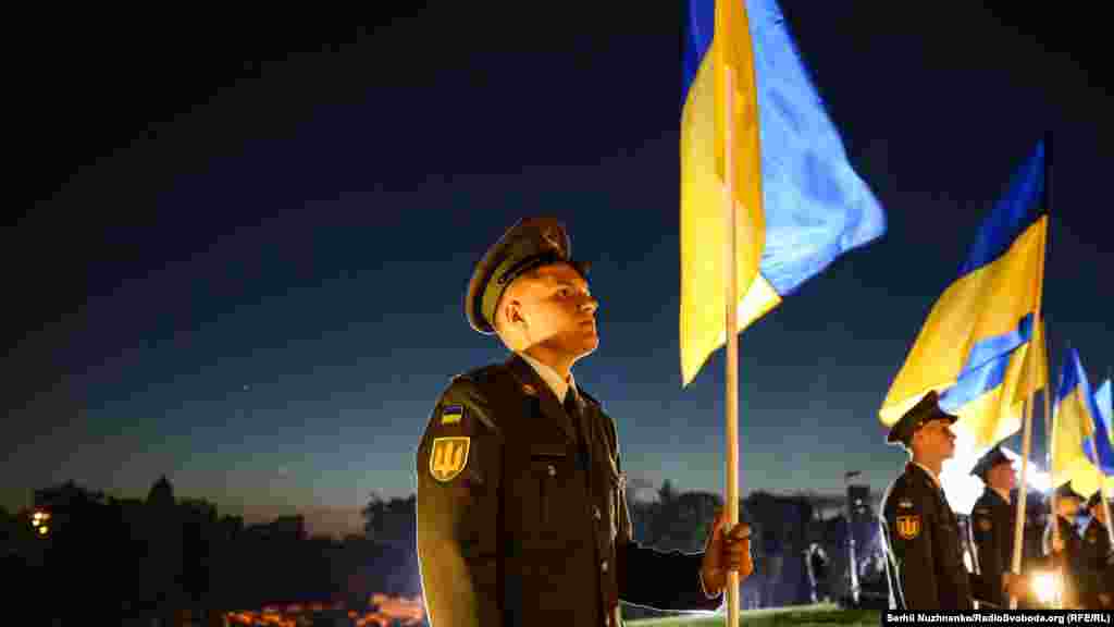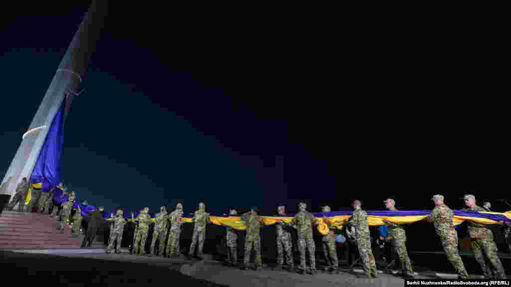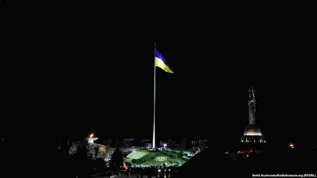 У Києві підняли головний стяг країни. На висоті 90 метрів над Печерськими пагорбами висітиме Державний прапор України. Його розмір – 16 на 24 метри. Під час урочистих заходів були присутні ветерани бойових дій на Донбасі, громадські діячі, міжнародні дипломати і відомі спортсмени.