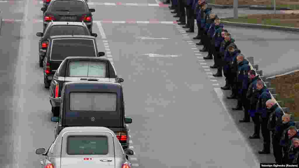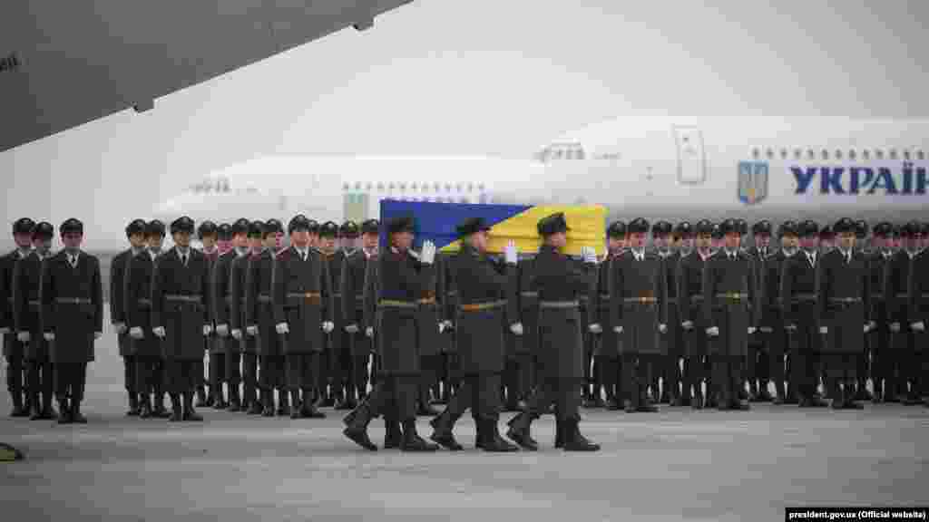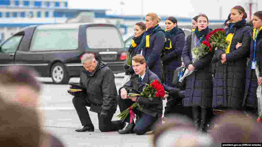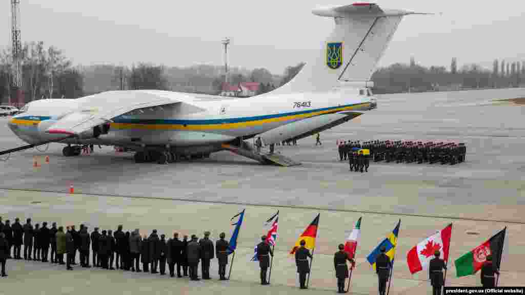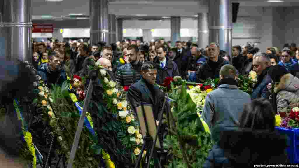 У міжнародному аеропорту «Бориспіль» пройшла церемонія прощання із загиблими внаслідок збиття літака МАУ в Ірані. Тіла українців, які загинули у катастрофі, доправили літаком вранці 19 січня в Україну. Зустрічали літак президент України Володимир Зеленський, прем'єр-міністр Олексій Гончарук, голова Верховної Ради Дмитро Разумков та інші представники влади.
