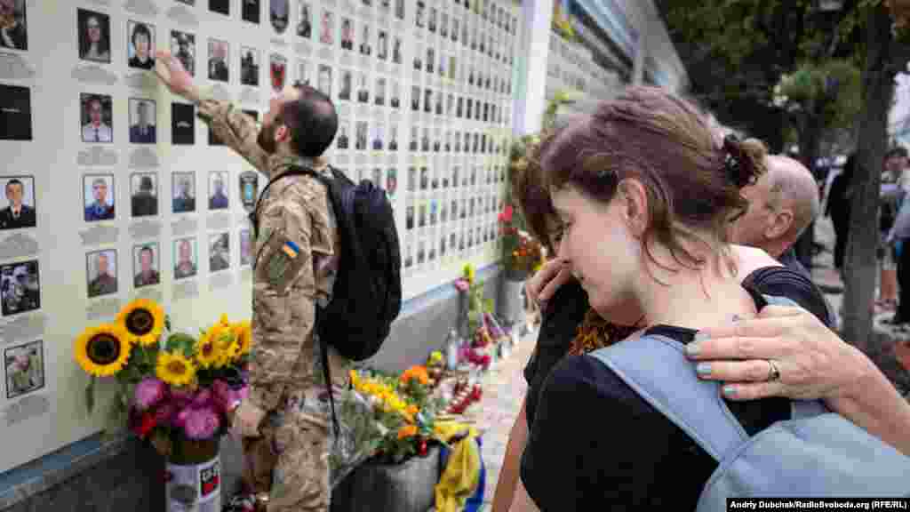 29 серпня – День пам’яті загиблих за свободу України. На Михайлівській площі у Києві зібралися декілька сотень людей: сім’ї загиблих героїв, їхні побратими, друзі, представники громадських організацій. Пройшла хвилина мовчання і Всеукраїнський молебень за загиблими на Донбасі. Сьогодні на Стіні пам’яті біля Михайлівського собору – 3905 фотографій загиблих бійців.
