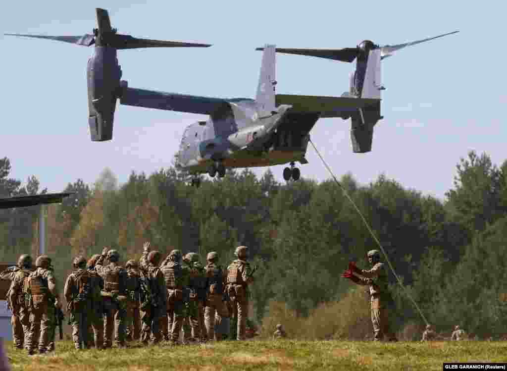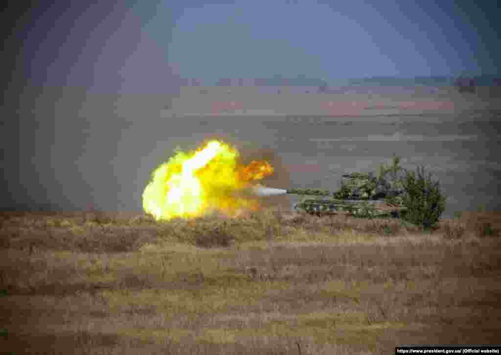 радників і спостерігачів від США, Великої Британії, Німеччини, Литви та Польщі, а також понад 100 військових частин та підрозділів усіх видів військ Збройних сил, близько 12 тисяч людей та 700 одиниць техніки. Одночасно з ними відбуваються на Яворівському полігоні у Львівській області навчання Rapid Trident-2020. ЗСУ, військові США, Німеччини, Данії, Румунії, Литви, Польщі, Канади та Великої Британії – загалом близько 4000 осіб – взяли участь у цих тренуваннях. Залучені конвертоплани США, колісна та гусенична військова техніка, армійська авіація Сухопутних військ та авіація Повітряних сил України. (Фото: Офіс президента, Reuters, RFE/RL: Сергій Нужненко).