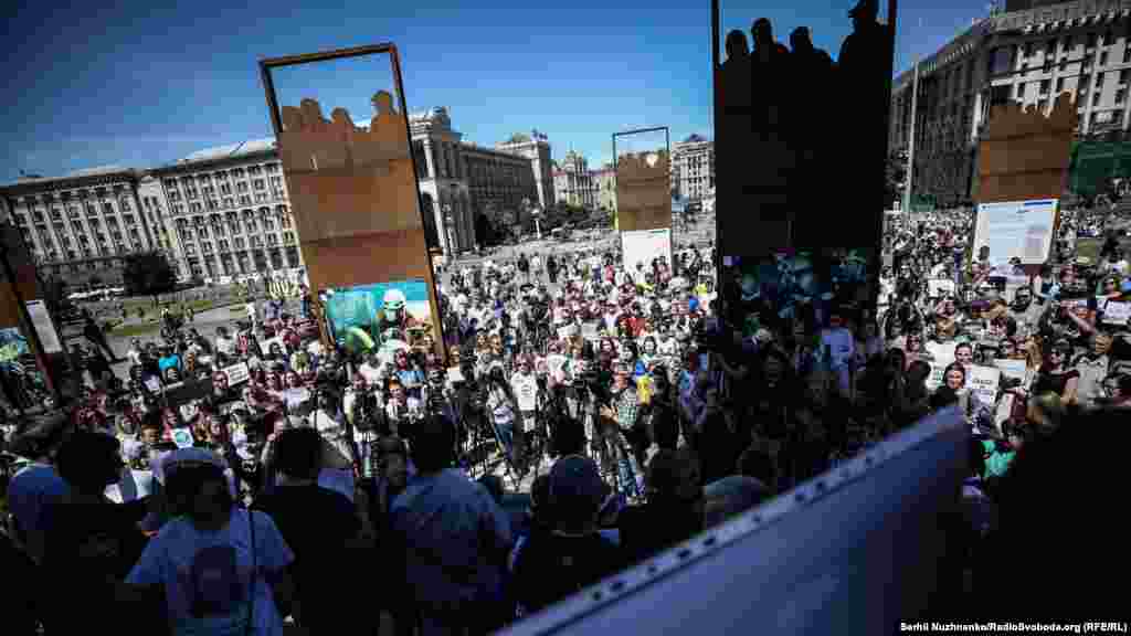 На майдані Незалежності в Києві пройшла акція «Врятуємо Олега Сенцова» (#SaveOlegSentsov). Основне гасло акції – «покажи червону картку Кремлю». Організатори задумали її у футбольній тематиці, напередодні Чемпіонату світу з футболу, який цього літа проходитиме в Росії.