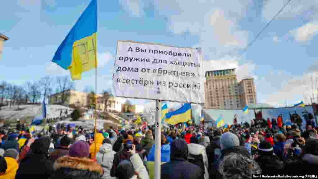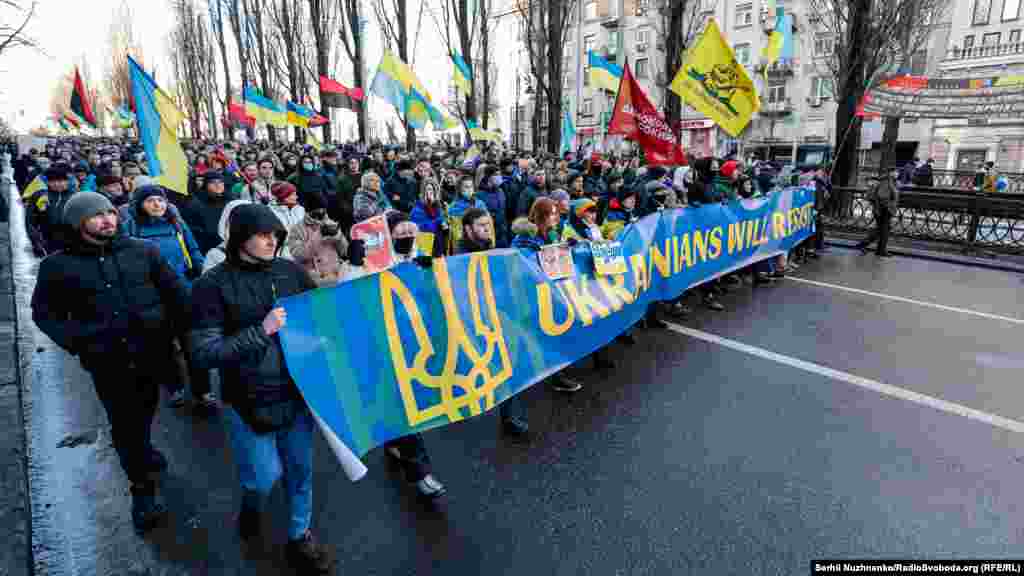 У Києві декілька тисяч людей вийшли на Марш єдності за Україну на тлі загрози нового військового вторгнення Росії на українську територію.
