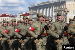 Фото маршів російських військових із пов'язками на рукавах викликали бурю в соцмережах