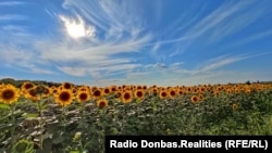 У серпні Радіо Донбас.Реалії віднайшли на околиці Донецька поле соняшників. На той момент вони якраз цвіли, й це створювало картину українського прапора, як це часто буває в українських полях. Світлини зроблені ноподалік донецького мікрорайону Бірюзова, на горизонті ви можете побачити шахту Абакумова та обриси спального району. Ми вирішили показати вам це поле у 30-річчя Незалежності, оскільки зараз це – єдиний прапор, «дозволений» окупаційною адміністрацією в Донецьку та Луганську. Понад 260 людей перебувають у незаконному ув'язненні підконтрольних Росіх сил, в тому числі, за те, що вважають Донбас – це Україна.