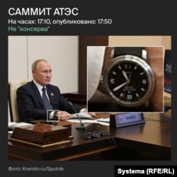 Тож годинник Путіна поспішає більш ніж на дві години від заявленого часу зйомки і на півтори години – від моменту публікації на сайті Кремля.