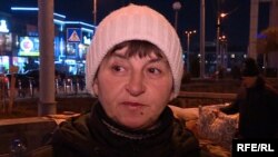 Я живу ось тут на лавці. Зараз акція проходить, стоїмо на Майдані, заробляємо гроші. По 350 гривень платять, то ми перебиваємося. Завжди приїжджають віруючі, привозять одяг, їжу. Ми зараз їжі не потребуємо, оскільки заробляємо і є за що поїсти. Домовилася про підробіток в одному супермаркеті. За зміну платять 550 гривень. На акції достою, два дні лишилося, а потім піду на роботу. Ми знайшли квартиру під Києвом. 20 хвилин на електричці. 2000 гривень за кімнату зі всіма комунальними послугами. Зберемо гроші і віддамо власниці. А зараз доводиться жити на вулиці, бо на третьому поверсі на Південному вокзалі – ганяють. Поліція й охорона – виганяє. От і доводиться тут лягати і спати. А що робити? Вкриваємося ковдрами, які є, і живемо на вулиці.