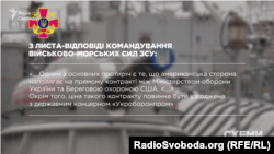 «...Одним з основних протиріч є те, що Американська сторона наполягає на прямому контракті між Міністерством оборони України та Береговою охороною США. (...) Тобто американська сторона наполягає на прямому контракті, а законодавство України вимагає наявність українського посередника. (...) Окрім того, ціна такого контракту повинна бути узгоджена з Державним концерном «Укроборонпром», – йдеться у листі-відповіді Командування Військово-морських сил ЗС України.
