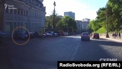 Автівки супроводу бізнесменів залишаються чекати біля перехрестя. Біля бокового заїду за 9 хвилин після заїзду Суркісів вже стояв автомобіль супроводу народного депутата Олександра Грановського.