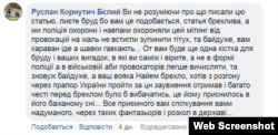 Щоправда, пізніше, він же напише у коментарях у Facebook, що був на цій акції від поліції охорони і «охороняв мітинг від провокацій».