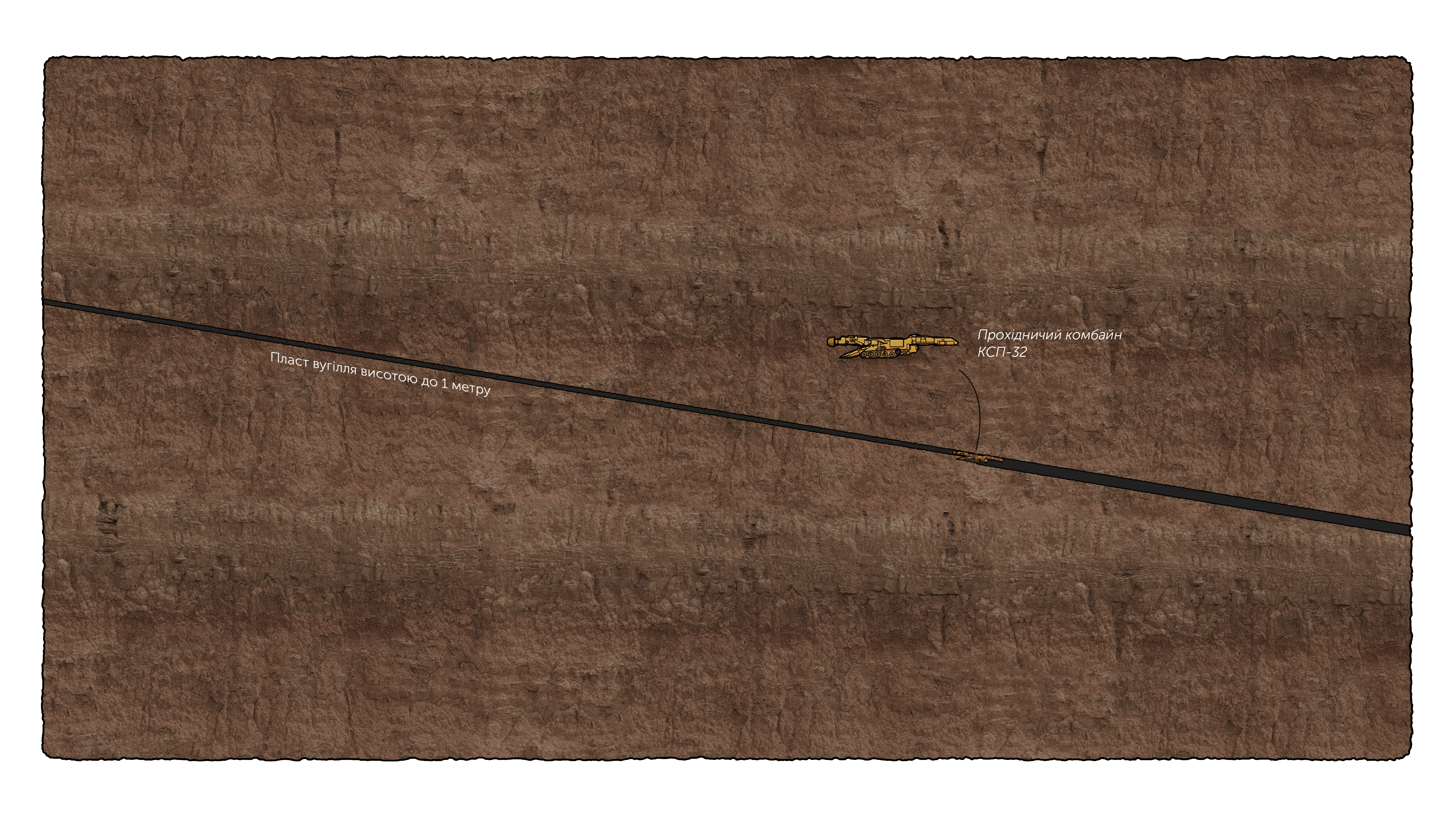 Підземний коридор заповнює несамовитий гуркіт і скрегіт – машина починає лупати скалу. За секунди повітря перетворюється на біле молоко. Роздивитися щось поперед себе неможливо – якщо витягти вперед руку, пальців майже не видно. Навіть потужні ліхтарі не завжди можуть пробитися крізь таку завісу. Білий осідає на одязі, техніці, очах. За хвилину все завершується. З комбайну до нас спускається Дмитро Хоришко – бригадир прохідників. Людей, які власне пробивають землю заради видобутку вугілля.