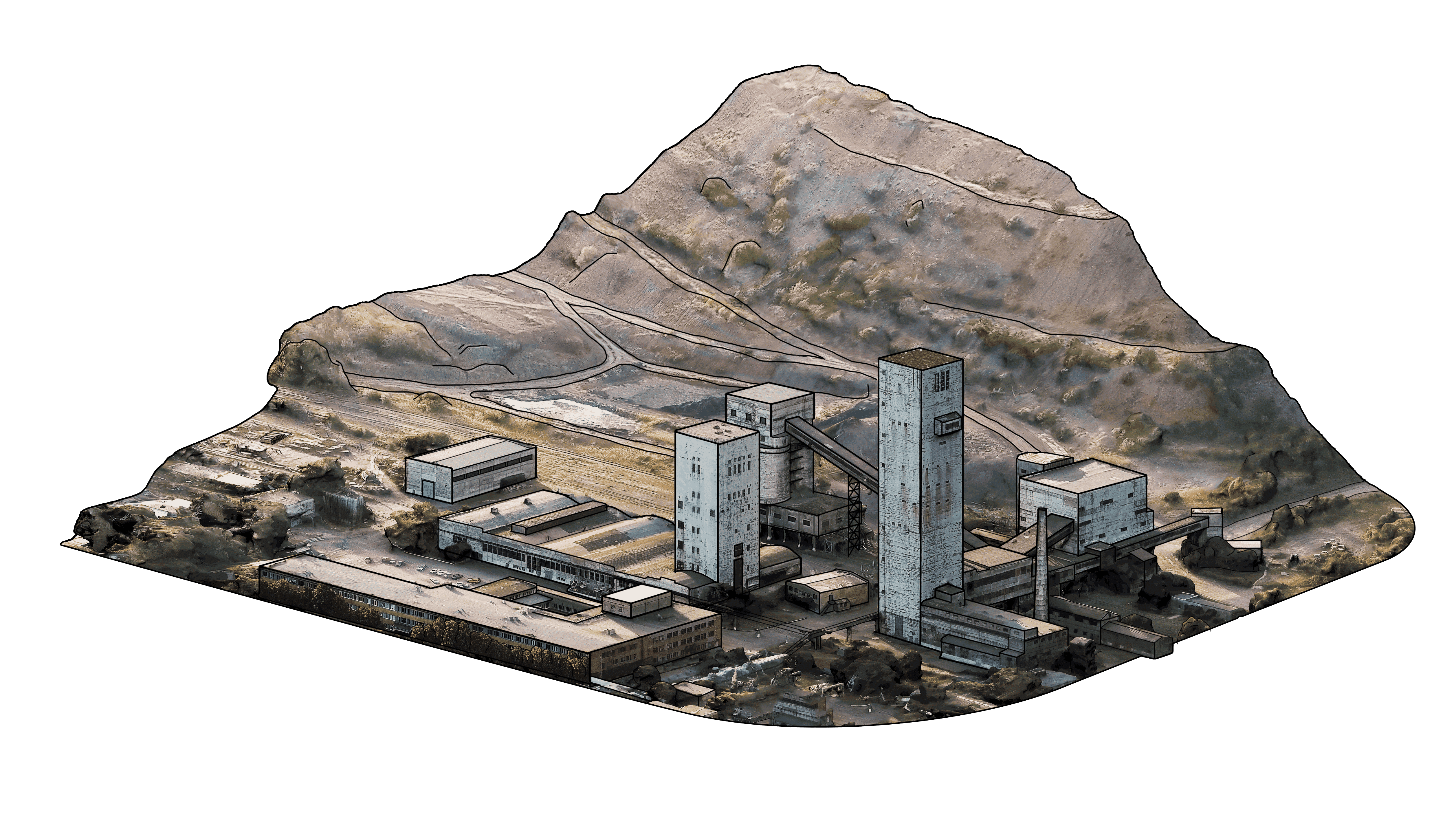 Тут видно і клітку, в якій ми кілька годин тому спускалися під землю, і , в який ми лазили, і вентилятори, які ганяють повітря під землею, і збагачувальний завод. Загалом – абсолютно всі елементи шахти, які в конкретний проміжок часу або працюють, або простоюють.