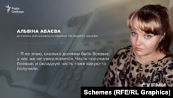 У телефонній розмові дружина Абаєва також підтвердила те, про що писала на форумі: гроші надійшли: «Я не знаю, сколько должны быть боевые, у нас же не уведомляется. Часть получили боевые, и окладную часть тоже какую-то получили».