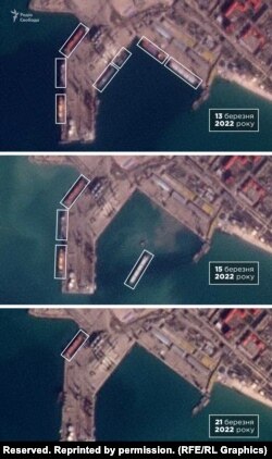 У розпорядженні «Схем» є супутникові знімки за той період, на яких можна побачити рух суден окупантів біля згаданого Богуслаєвим девʼятого причалу.