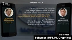Ця розмова між Сітновим та Богуслаєвим відбулась 17 березня 2022 року. За декілька днів російський бізнес-партнер Богуслаєва звітує: питання вирішили, «друзі» є.